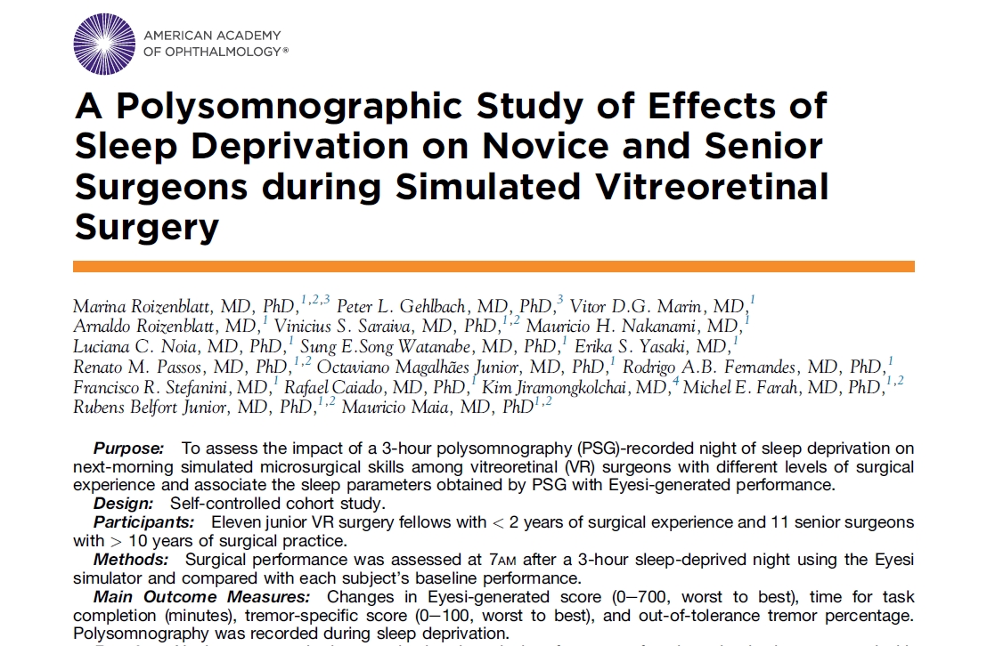 Neste trabalho, estudou-se como problemas na qualidade de sono do oftalmologista interferem no seu desempenho cirúrgico no dia seguinte.
